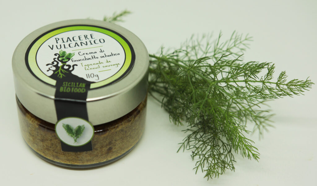 La tapenade de fenouil sauvage est le résultat de la fusion de cette plante aux mille vertus et de VulcanOil, notre propre huile d’olive extra vierge IGP. Cette crème possède une couleur verte herbacée et une saveur prononcée qui rappelle l’aneth. Grâce au traitement effectué immédiatement après la récolte, les arômes sont parfaitement préservés et, à l’ouverture du pot, cette odeur typiquement sicilienne se libère instantanément.